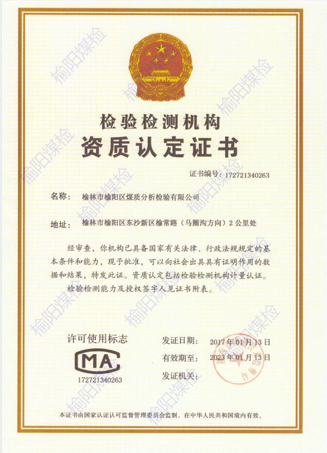 榆林市榆陽區(qū)煤質(zhì)分析檢驗(yàn)有限公司是一家從事煤炭質(zhì)量檢驗(yàn)檢測(cè)的公司,其前身是陜西省榆林市榆陽區(qū)煤炭公司質(zhì)量檢驗(yàn)部,成立于2005年,是其內(nèi)設(shè)機(jī)構(gòu)。經(jīng)過十多年的努力與發(fā)展,檢驗(yàn)室各方面的條件與能力都達(dá)到了一定規(guī)模,并于2016年7月29日由陜西省榆林市榆陽區(qū)煤炭公司出資注冊(cè)為獨(dú)立法人企業(yè)。2017年1月13日,公司順利通過檢驗(yàn)檢測(cè)機(jī)構(gòu)資質(zhì)認(rèn)定評(píng)審工作并取得了由陜西省質(zhì)量技術(shù)監(jiān)督局頒發(fā)的《檢驗(yàn)檢測(cè)機(jī)構(gòu)資質(zhì)認(rèn)定證書》。